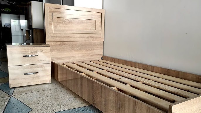 تجميع الألواح الجانبية والقاعدة الرئيسية للسرير باستخدام المسامير والوصلات المرفقة.